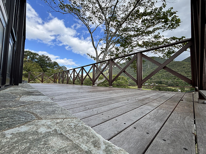 耐久性と安全性を確保しながら、景観にも配慮したウッドデッキが完成。