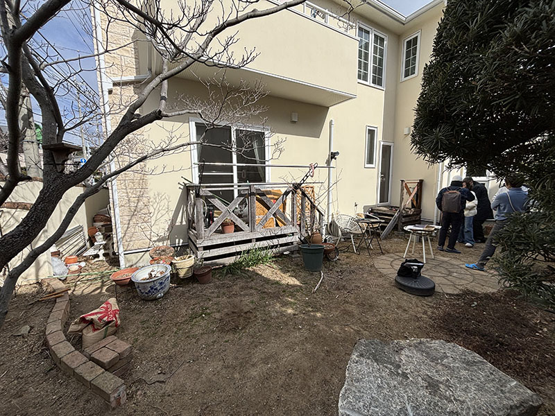 前面道路が狭い現場のため、搬入時には一時的に通行が難しい状況となりましたが、スタッフ全員で協力し、重い材料を慎重に運び込み、いよいよ施工へ。